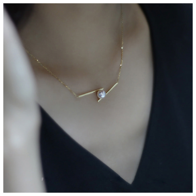 This Balance Beam Pearl-Set Clavicle Necklace draws inspiration from minimalist aesthetics, seamlessly combining the structured elegance of a balance beam design with the gentle glow of pearls. Each pearl is thoughtfully set into the metal framework, symbolizing grace blooming within balance—an embodiment of inner strength and softness. The clavicle-length chain perfectly outlines the neckline and complements a wide range of styles, making it an ideal choice for daily wear, romantic outings, or formal occasions. Wearing it feels like carrying a quiet sense of poise and harmony close to your heart.