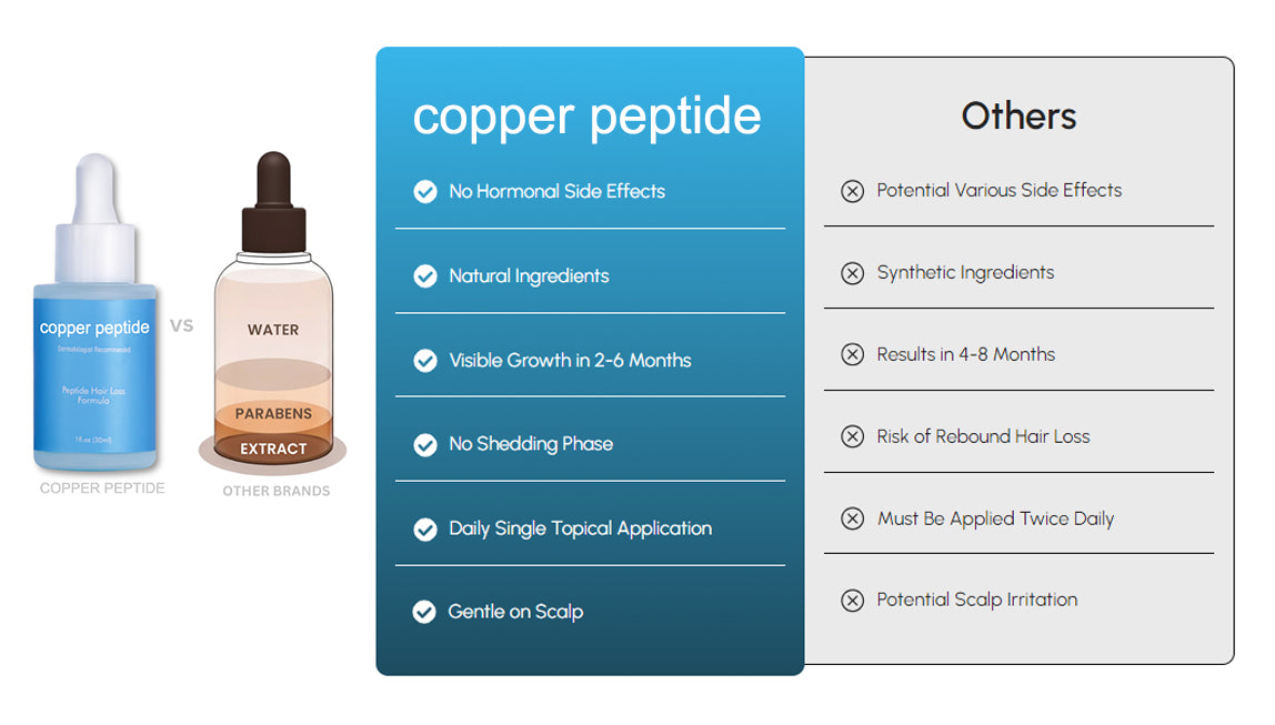Copper peptide stands out with its high concentration of active ingredients, offering a potent, undiluted formula free from fillers and chemicals.