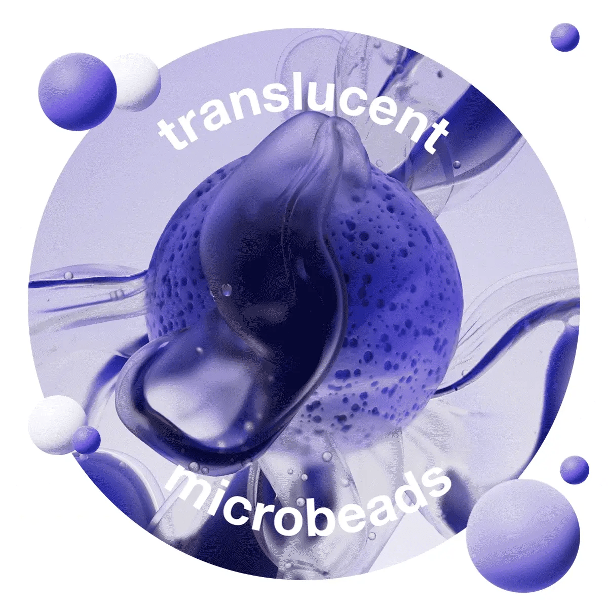 Translucent microbeads made from minerals (not plastics) extend your clean without stripping, drying, or irritating the scalp.