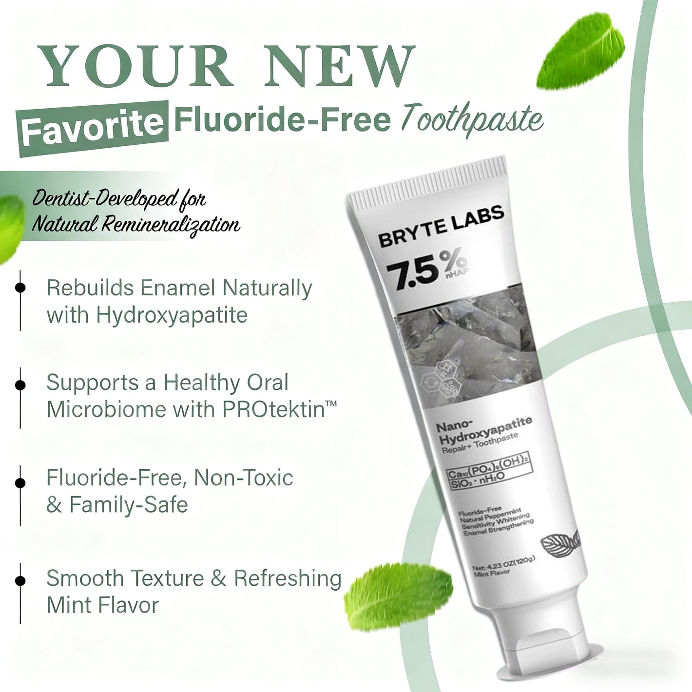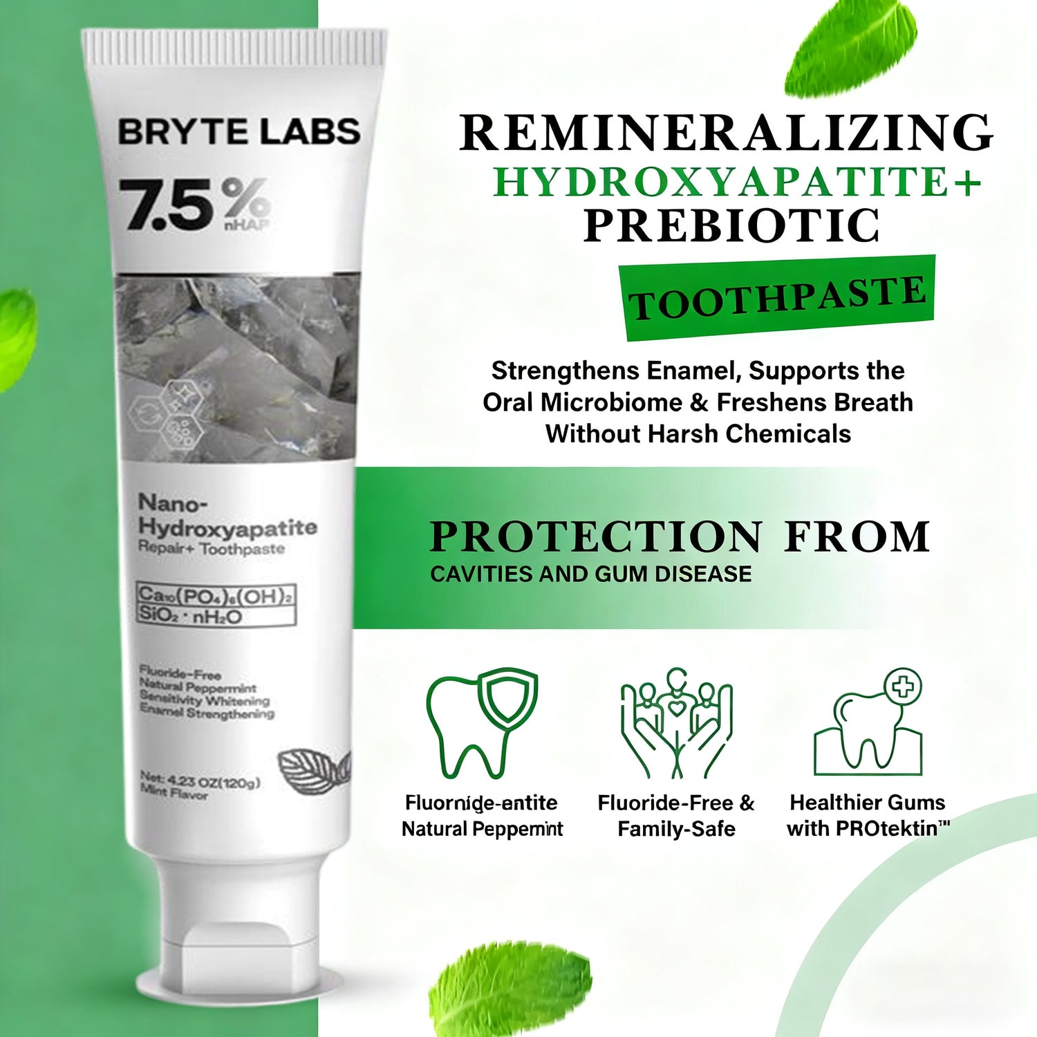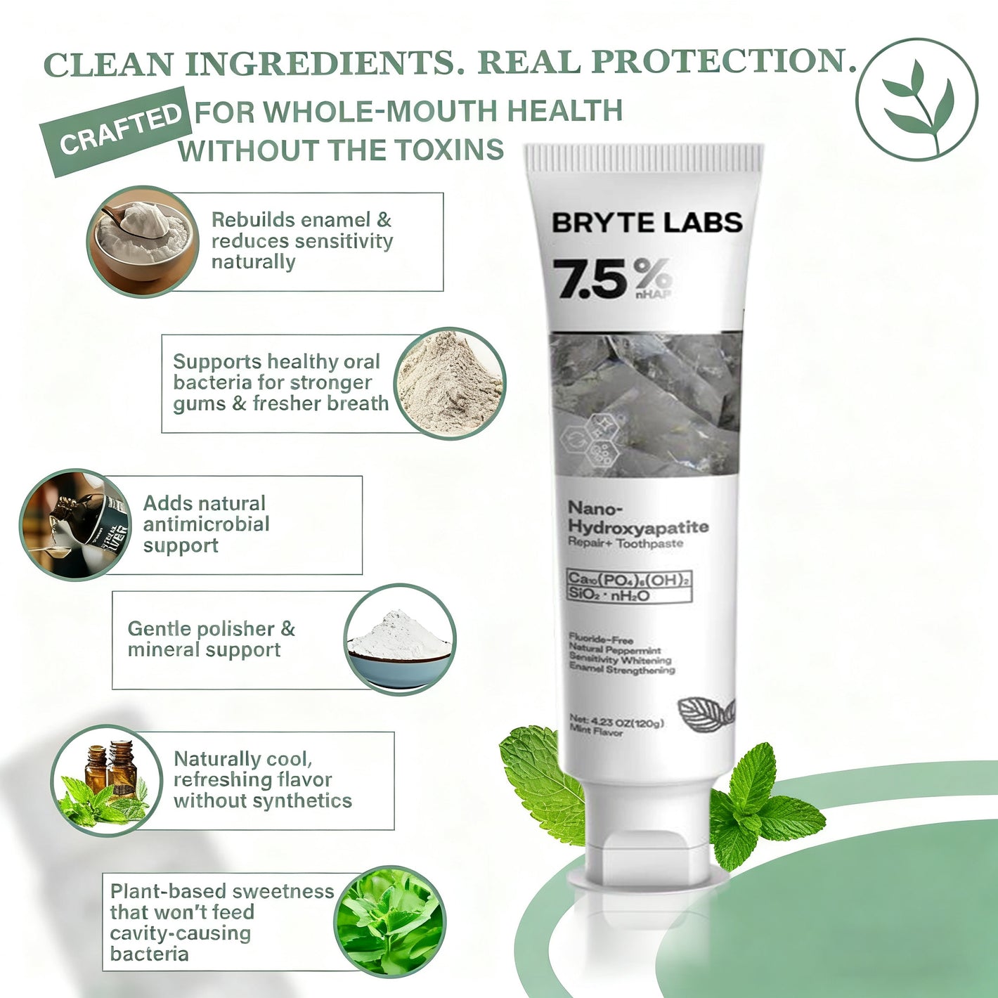 Most natural toothpastes still contain glycerin, harsh abrasives, or synthetic ingredients. Ours is dentist-developed, fluoride-free, glycerin-free, and made with hydroxyapatite + for true enamel and microbiome support.